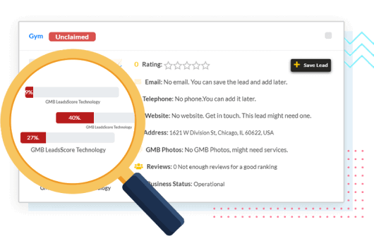 View contact information, address, page ratings, social media standing, optimization score, and 30 other additional metrics that are EXCLUSIVE to Leadsgorilla.