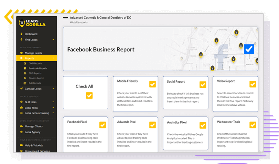 LeadsGorilla allows you to seamlessly target any potential client appearing on Facebook or Google just by entering a niche and a location. On top of this, you have dozens of different filters available to focus your search even further.