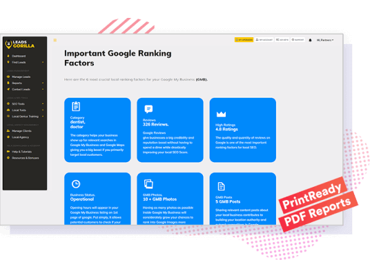 LeadsGorilla uses the VIA (Value in Advance) marketing framework. There’s a lot of psychology in play that makes this framework so effective for closing leads you’ve never met before. You get to show your prospects just how attainable their end goal is and come across as an AUTHORITY figure. By sending them a free, beautifully-designed PDF report that outlines all their problems with pinpoint accuracy, you MAXIMISE your chances of making a successful pitch. The psychology behind this approach makes it way more likely for a prospect to go for your services since they already feel like you’ve provided free value in advance. This is the reason WHY our users experience the highest client-closing rate in the industry.