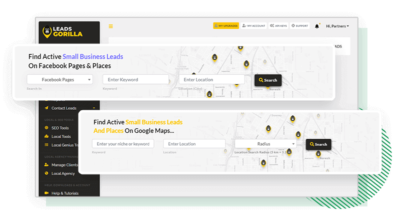 A lot of businesses need help and LeadsGorilla can help you find them. With the global economic downturn and all the hurdles that come with it, small businesses need specialized help in order to survive in the digital era. LeadsGorilla allows you to access and filter the two biggest business databases available - Facebook Places & Google Business Profile.