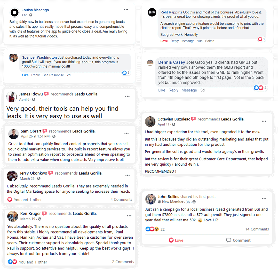 The majority of our users (21.000+) are digital agencies & consultants that use LeadsGorilla to sell digital services (SEO, Rep. Management, Web Design, Graphic Design, etc.) to Small and Medium Businesses.