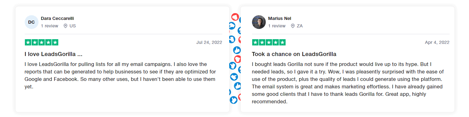 Take the next 30 days to decide whether or not LeadsGorilla is right for your business. Tap into the most freshest and profitable leads that the world has to offer. Use the platform to connect with these leads in one click with no cold calling. If after doing so, you feel that LeadsGorilla isn't everything we've promised on this page (and then some), we'll issue you a prompt and courteous refund.